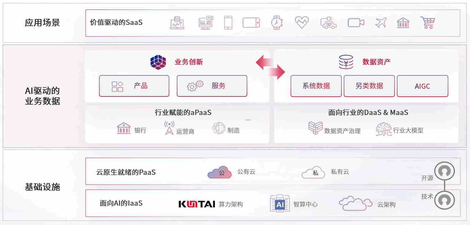数字时代,,,围绕企业数字化转型的关键要素,,,,z6mg·人生就是博数码开创性的提出数云融合战略和技术体系框架,,,着力在云原生、、、、数字原生、、、AI原生和信创产业上架构产品和服务能力,,,,为处在不同数字化转型阶段的快消零售、、、汽车、、、金融、、、医疗、、政企、、、、教育、、、运营商等行业客户提供泛在的敏捷IT能力和融合的数据驱动能力,,,,构建跨界融合创新的数字业务场景和新业务模式,,助力企业级客户建立面向未来的核心能力和竞争优势,,,全面推动社会的数字化、、智能化转型升级。。